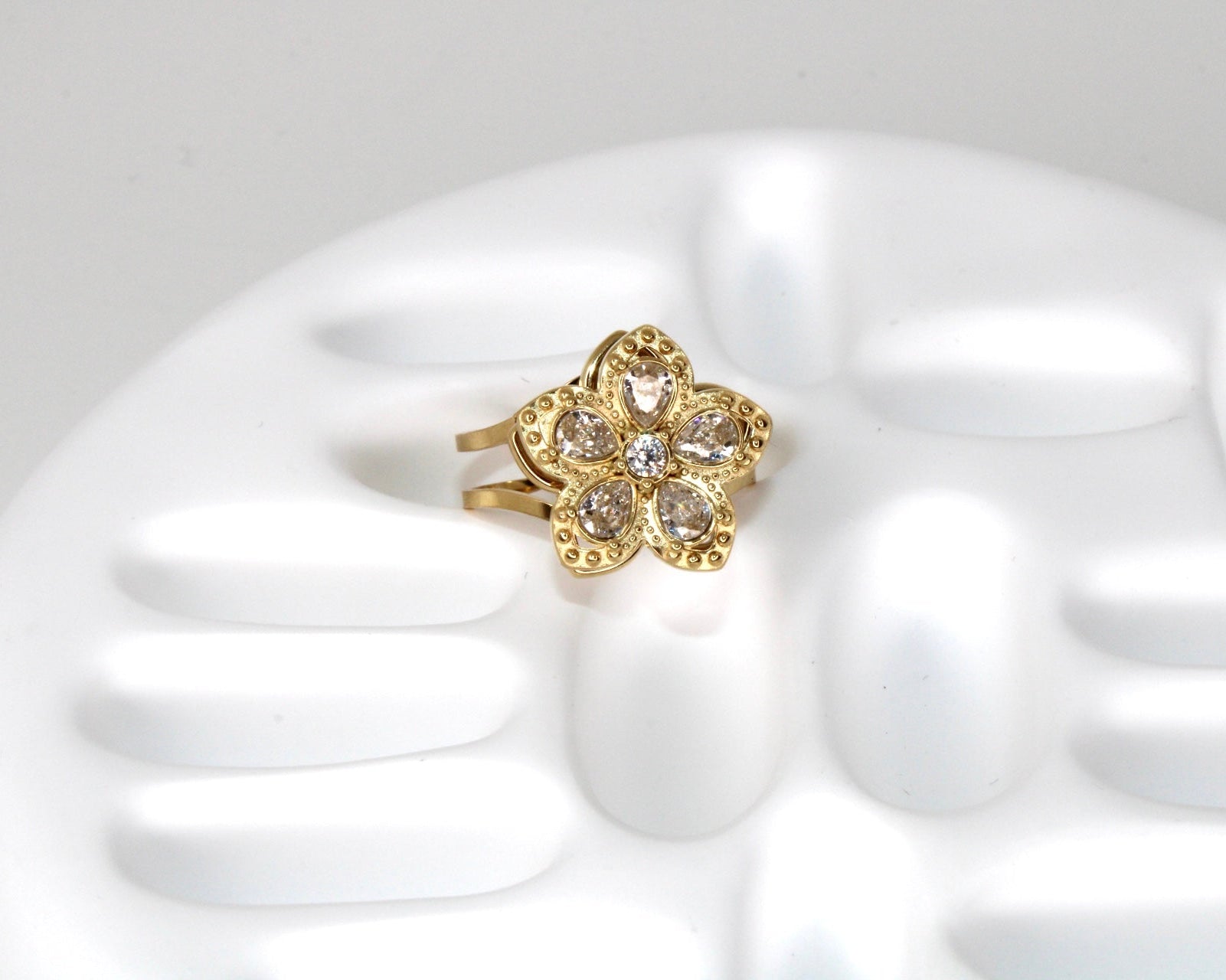 Alliant élégance et bien-être, la bague Paula séduit par son motif floral délicatement strassé et son anneau rotatif anti-stress. Conçue en acier inoxydable, elle associe éclat, solidité et confort pour un bijou à la fois raffiné et apaisant. Parfaite pour celles qui aiment allier style et sérénité au quotidien.