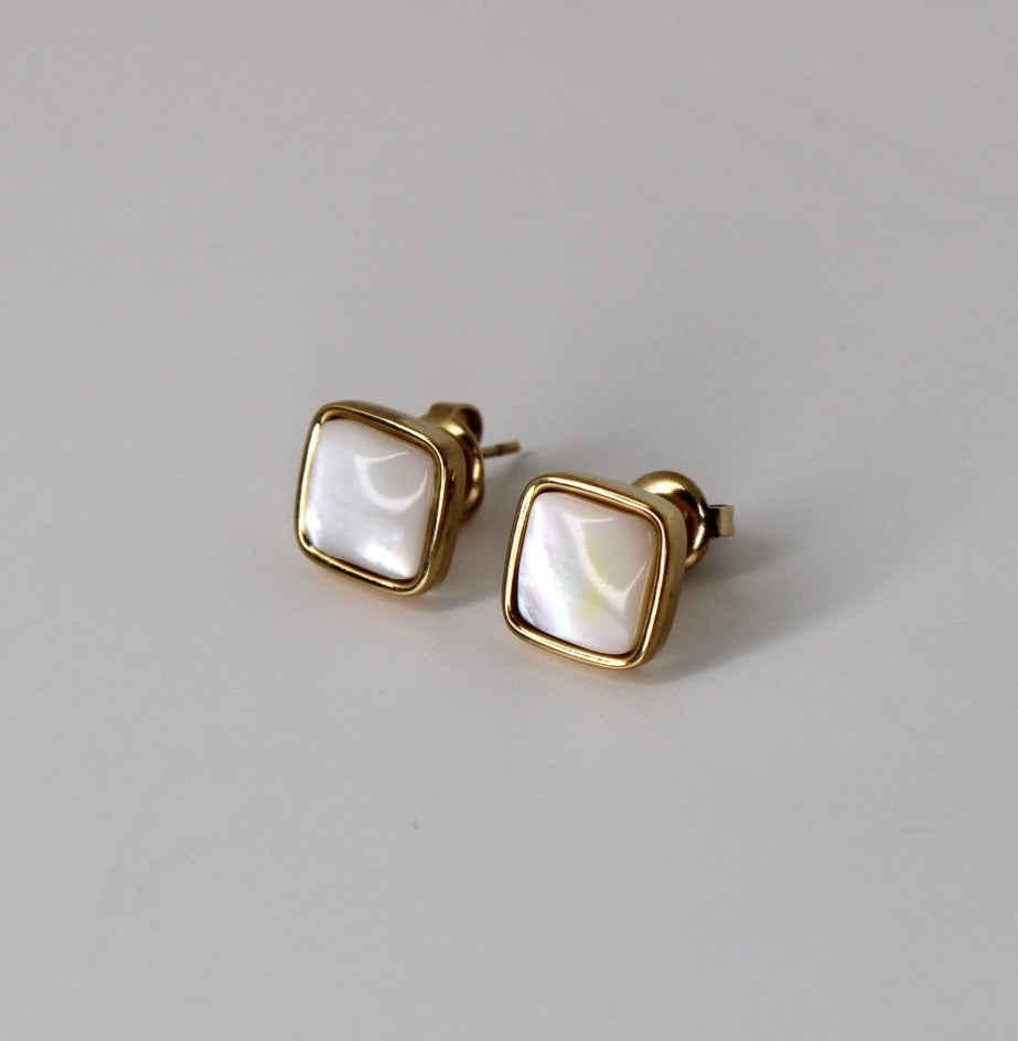 Boucles d’oreilles Cindy carrées nacrées – Doré & Nacre blanche
