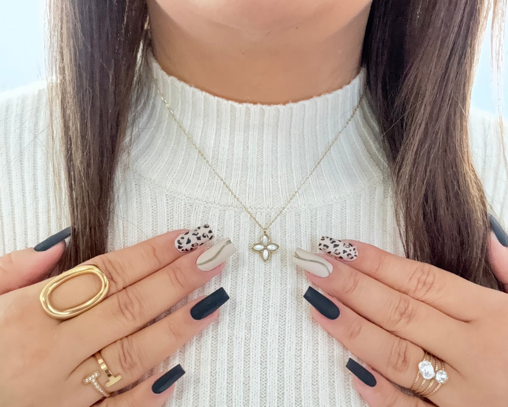 Collier sur chaîne en acier inoxydable composé d'un pendentif trèfle à quatre feuilles en pierre naturelle.