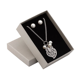 - Parure avec collier cœur et boucle d'oreille en perle.